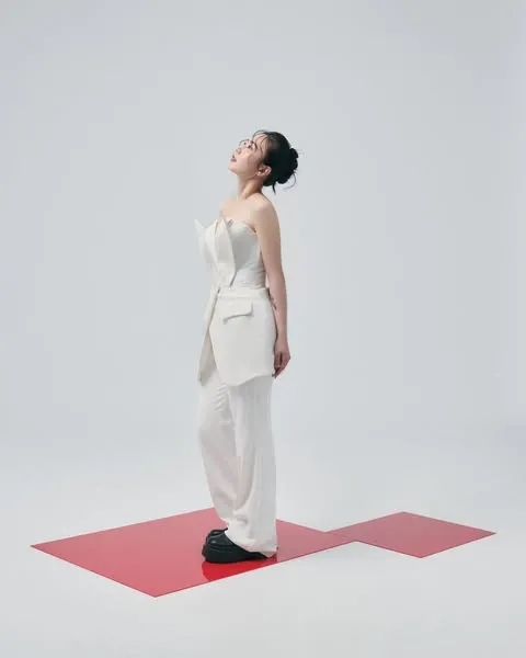 硬挺西裝材質, 展現出強烈的結構感與高雅氣質。